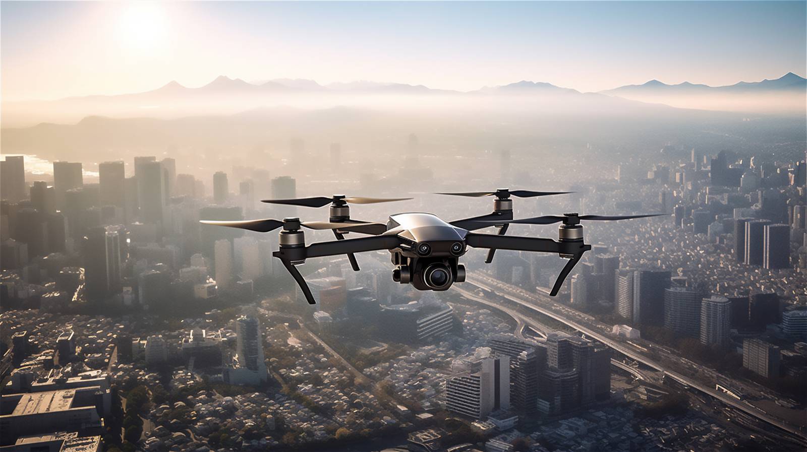 Drone survolant une ville pour un relevé de données photo